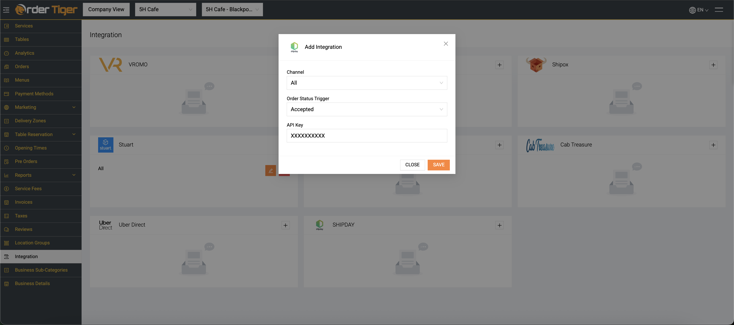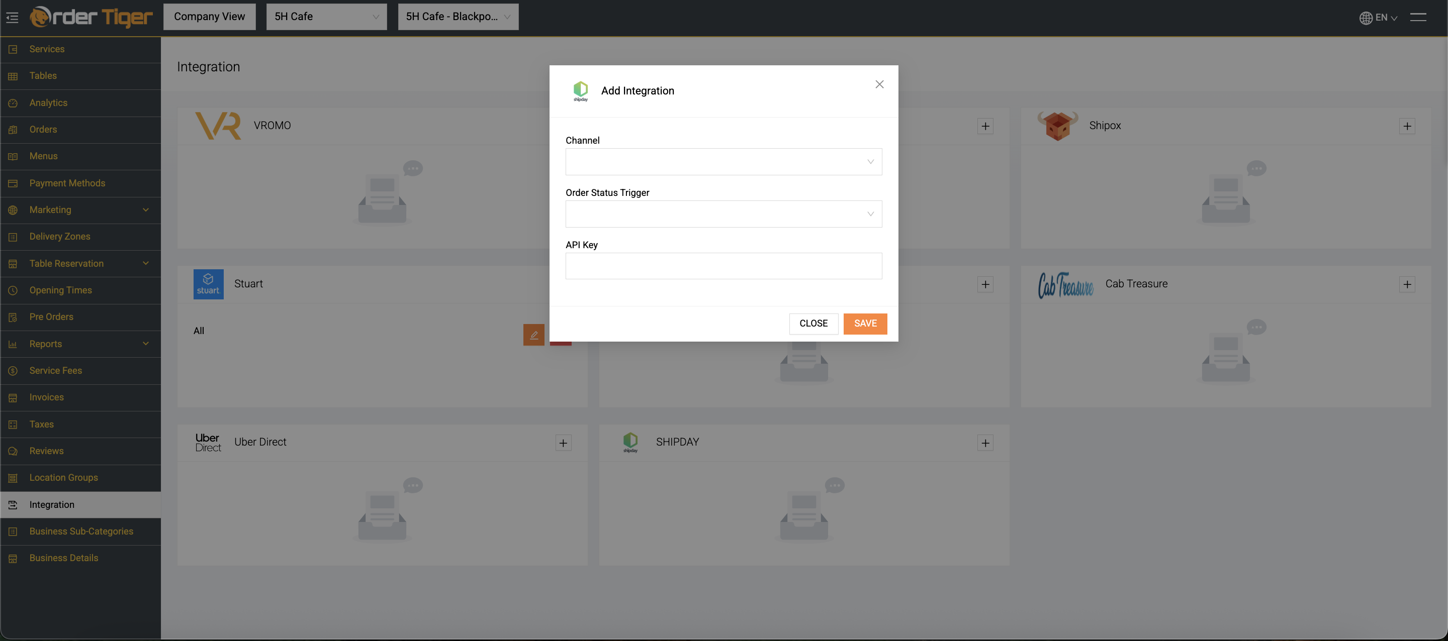Once everything is prepared, you can complete the integration directly from your Order Tiger Dashboard.