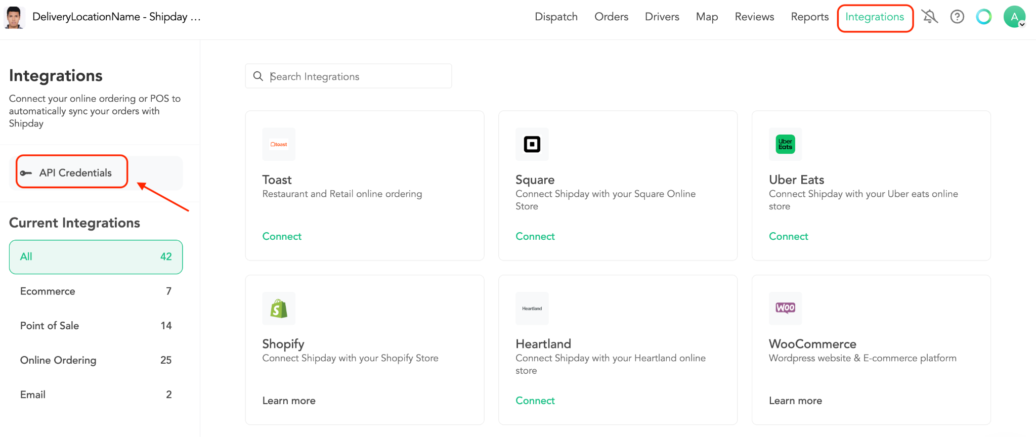 Step 1.2: Go to the “Integrations” section from menu and Click on the “API Credentials” like below -